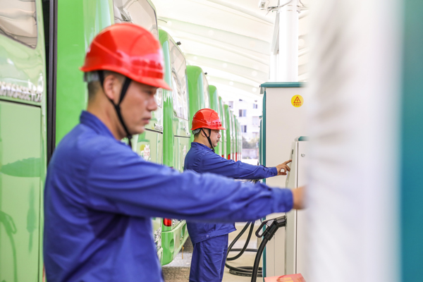 在紹興市公交充電站,電力人員正在調試公交充電樁。許楊攝