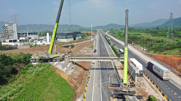 杭金衢改擴建二期指揮部相關負責人介紹,為保障本次天橋梁板架設順利完成,施工單位對天橋梁板兜底、護欄鋼筋等輔助施工措施進行場外預制拼裝、集約化施工,減少涉路作業工序周期。同時,加強與高速交警等單位部門溝通對接,優化完善梁板架設交通組織方案,通行車輛借對向車道行駛,減少了施工對高速運營的影響。