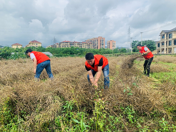 桐廬縣煙草專賣局黨員志愿者趕在暴雨前幫助農戶搶收油菜籽。桐廬縣煙草專賣局供圖