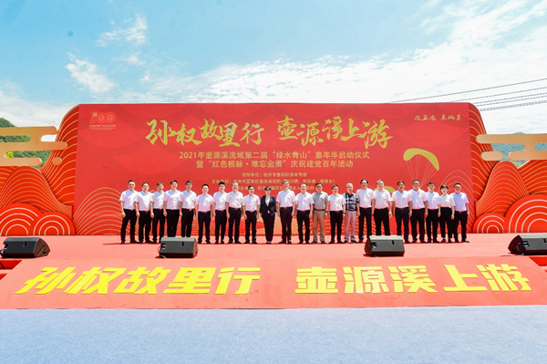 6月25日上午,壺源溪流域第二屆“綠水青山”嘉年華啟動儀式暨“紅色根脈 難忘金蕭”慶祝建黨百年活動在杭州市富陽區湖源鄉下干村舉行。