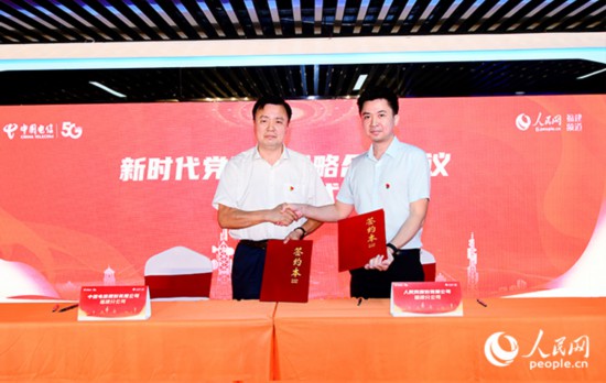 中國電信福建公司與人民網福建分公司簽訂戰略合作協議。中國電信福建公司供圖