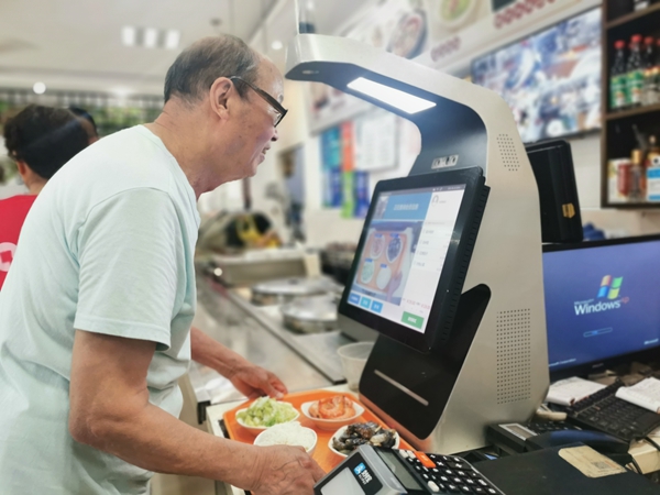 有時膳廳也會遇到一些小問題。很多老人記性不好,經常會忘記帶卡。有時候吃飯沒有帶卡,膳廳工作人員就讓老人下次再來補刷。2019年,膳廳專門配置了智能結算餐臺,只需采集老人的人臉數據,就可以實現自動識別身份、自動扣款等功能!罢媸翘昧,以后再也不用擔心弄丟飯卡了!鼻皝砭筒偷睦先撕荛_心。