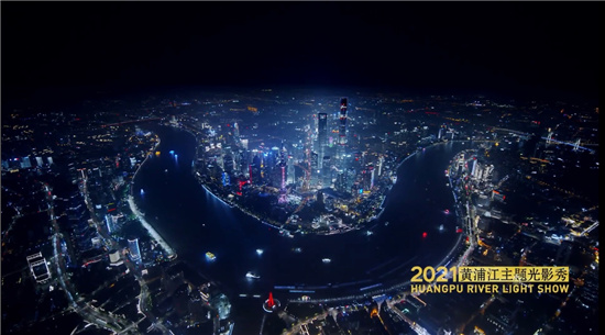 正中心角度航拍光影秀。上海發布微信公眾號 圖