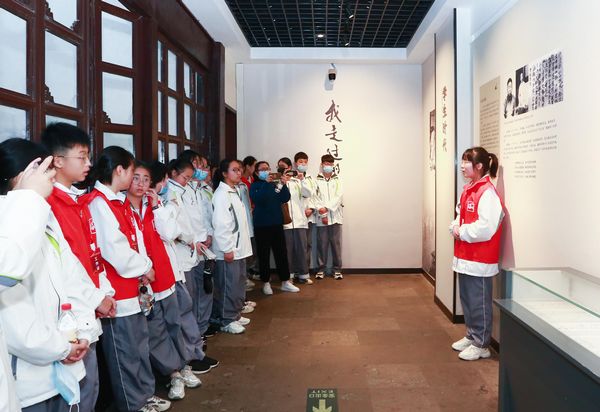 學生志愿者在茅盾紀念館為大家講解《是將來能為文者》專題展覽