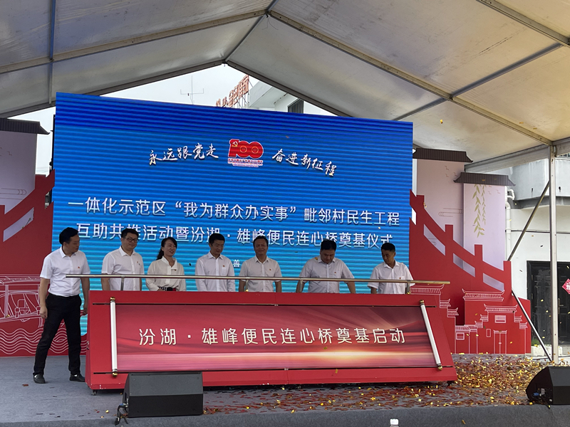 汾湖·雄峰便民連心橋奠基啟動儀式現場。人民網 王蕭蕭攝