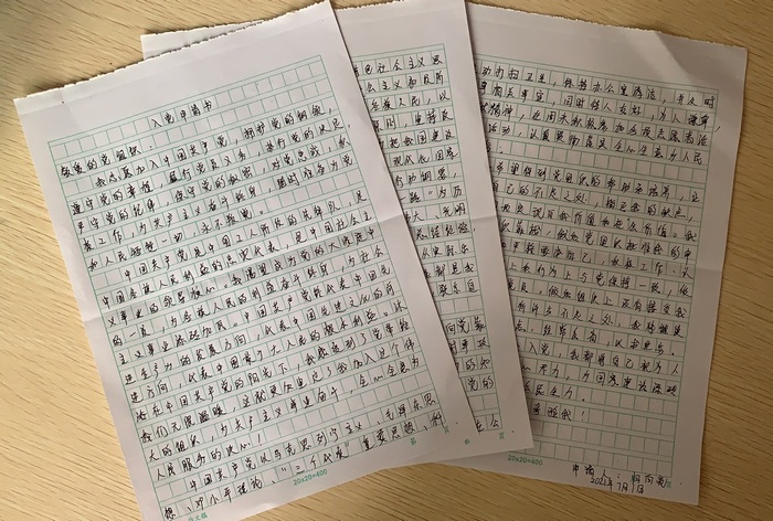 浙江農林大學大學生鄒挺在7月1日上交了入黨申請書!白詮闹袊伯a黨成立以來,團結帶領全國各族人民在中國革命、建設、改革、發展的過程中戰勝了一個又一個困難,完成了一個又一個奇跡。能在這個充滿儀式感又十分偉大的日子里提交入黨申請我倍感榮幸!编u挺說。