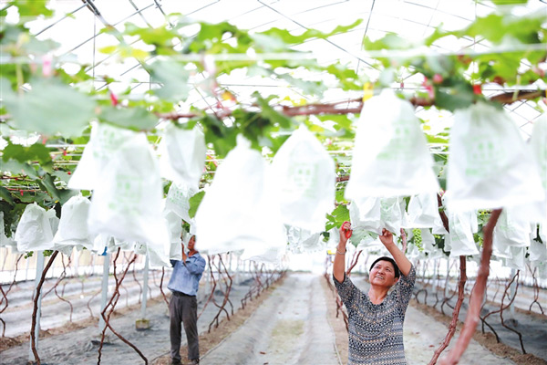 7月7日,正值小暑。湖州市吳興高新區靈糧農場高效設施大棚,農民為葡萄疏果、套袋,搶抓農時加緊管護,為豐收打好基礎。近年來,我市推廣高效、綠色現代農業發展模式,促進農業增效,帶動村民就業,為鄉村振興注入活力。(王潔涵)