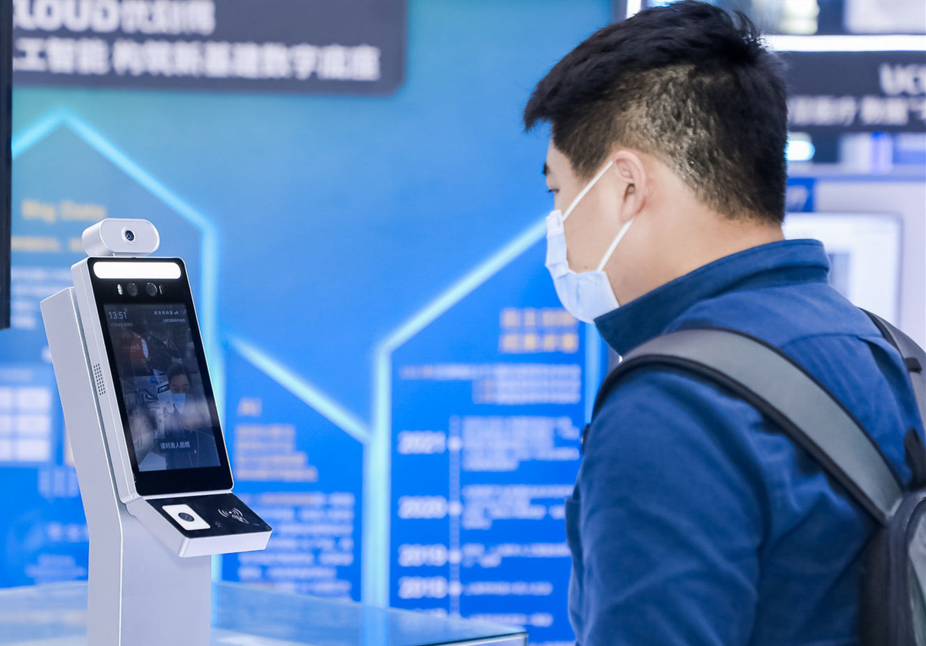 走近一款測溫平板,通過人臉識別功能,一秒內可同時實現單次測溫、實名登記、人證核驗及健康碼核查。這款優刻得推出的人臉識別測溫平板,即使在檢測對象化妝、戴眼鏡、佩戴口罩的情況下,也能憑借AI算法,結合紅外測溫,動態人臉檢測, 活體檢測,人臉識別等技術,在機場、醫院、高校等場景中輔助、取代人工完成安檢、測溫、考勤,實現人流數據的有效管理。