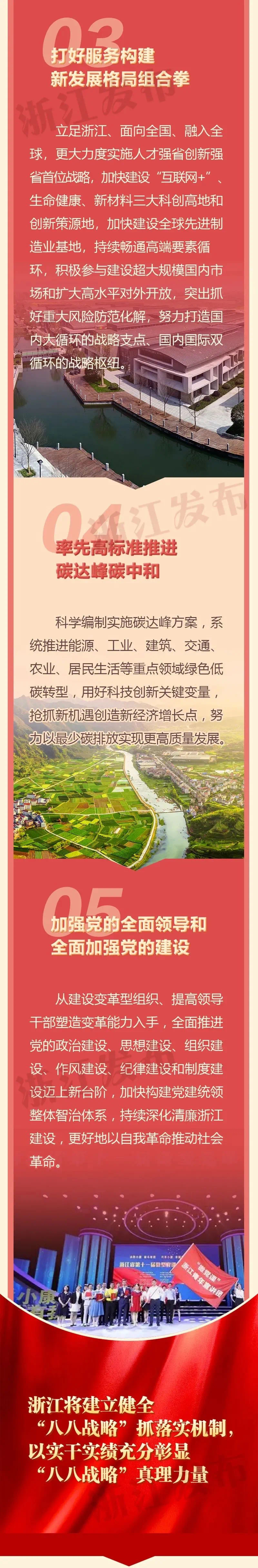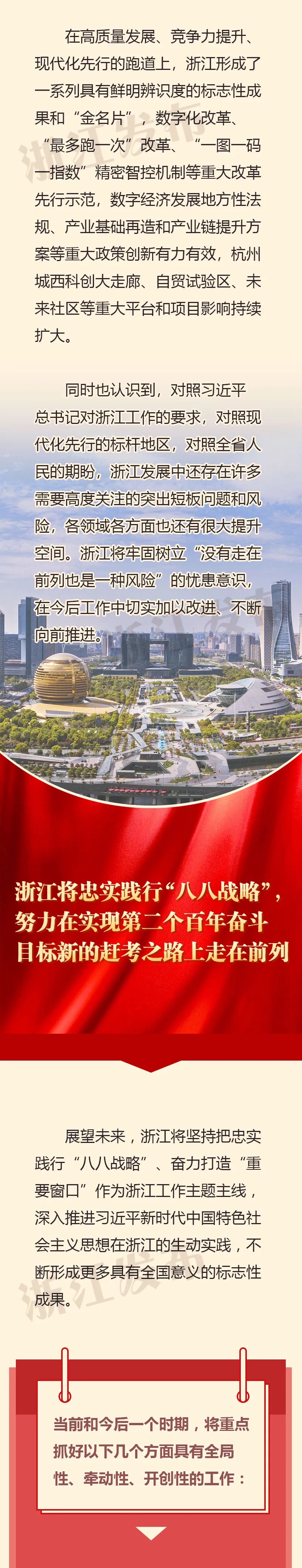 “八八戰略”是習近平總書記為浙江量身定做的引領浙江發展的總綱領、推進浙江各項工作的總方略,是習近平新時代中國特色社會主義思想在浙江萌發與實踐的集中體現。在全國上下深入學習貫徹習近平總書記在慶祝中國共產黨成立100周年大會上重要講話精神之際,回首實現第一個百年奮斗目標的歷史進程,浙江發生的歷史性變化、整體性躍升歸根結底得益于“八八戰略”的科學指引;放眼實現第二個百年奮斗目標新的趕考之路,浙江要在忠實踐行“八八戰略”上更顯擔當、再續華章,不斷開辟干在實處、走在前列、勇立潮頭新境界!