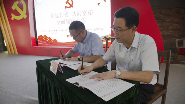 建行舟山普陀支行黨總支與普陀區螞蟻島管委會工作委員“黨建共建 共同富!比鎽鹇院献鲄f議簽署。建行舟山普陀支行供圖