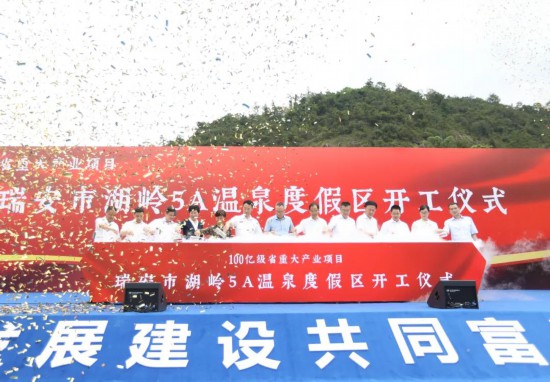 隨后,在湖嶺溫泉項目1號地塊現場,瑞安市湖嶺5A溫泉度假區項目也正式開工建設。該項目位于湖嶺鎮陶溪村,總投資超100億元,總用地689.5畝,是浙江省首個5A級品質溫泉、浙江省重大產業項目、瑞安西部新引擎培育示范帶一號工程,將打造成為輻射浙南閩北贛東的高品質旅游目的地。