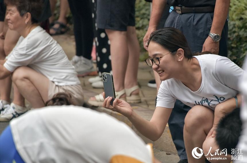 家長拿出手機記錄下孩子的運動時刻。人民網 張帆攝