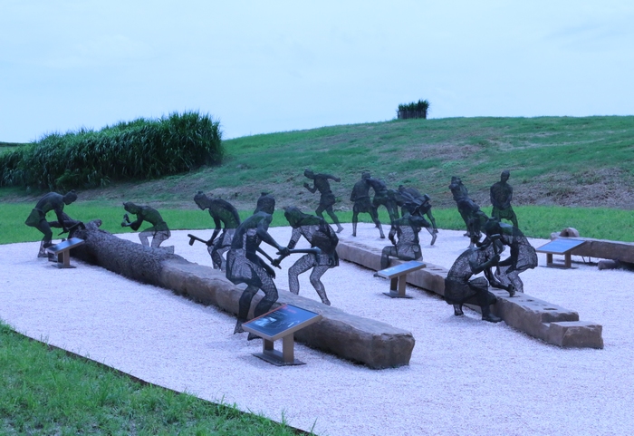 公園內雕塑小品展示了良渚先民的勞作狀況。人民網 王麗瑋攝