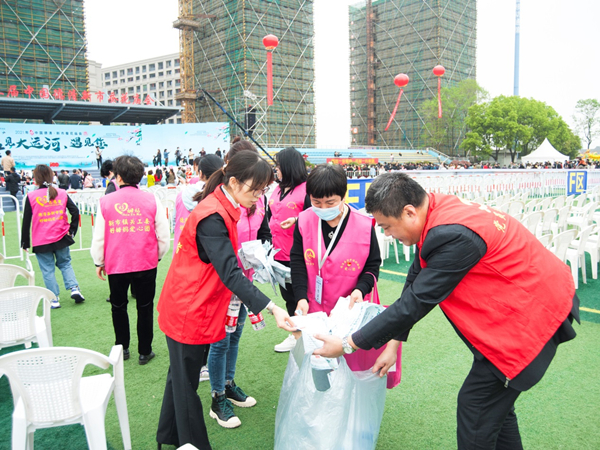 黨員零售戶與湖州煙草志愿者一起參加當地蠶花廟會志愿服務活動。朱玲莉攝