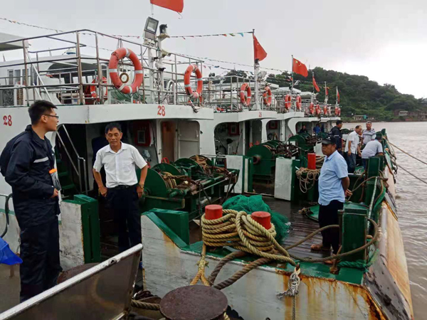 漁業執法中隊巡查石浦港沿岸,勸導漁船避風。