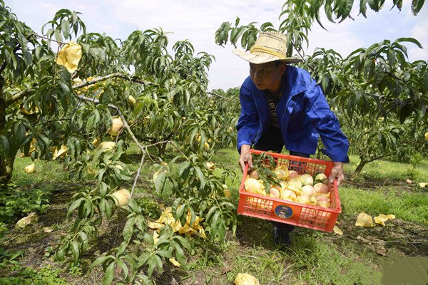 舟山市各地果農紛紛搶收、護果,以期將損失減到最小。胡社友攝