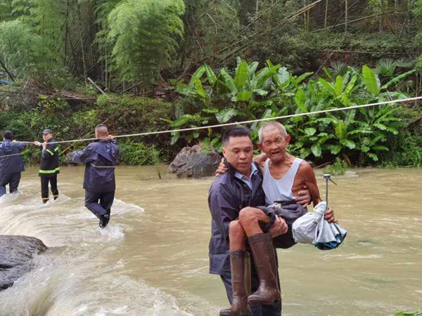 溫州市永嘉縣云嶺鄉南山村山上住著下肢殘疾的低保人員。7月23日,南山村應急分隊潘中華風雨中背著他徒步2公里下山轉移至避災安置點。