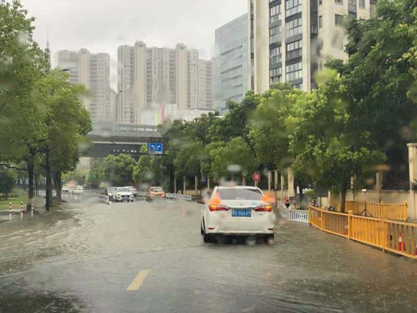 7月23日9時30分,寧波北環高架地面道路九龍大道交叉口因暴雨出現積水情況,影響車輛正常通行。