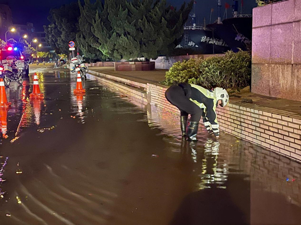 舟山交警排查積水路面的安全隱患。舟山交警供圖