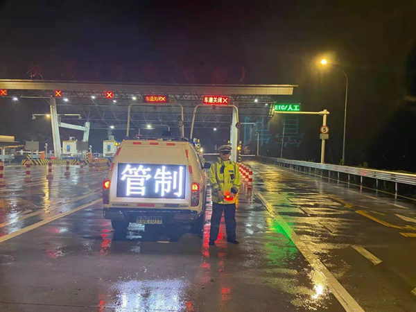 目前G1523甬莞高速寧波境內所有收費站只開啟一個人工通道,同時對兩客一危限行。寧波高速交警支隊六大隊供圖