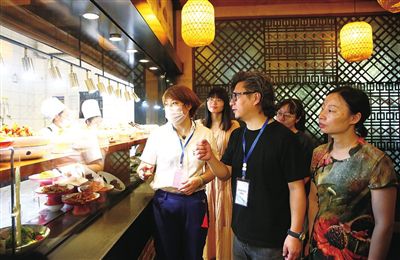 走進一樓大廳就餐區,墻壁上貼有食品安全信息公示牌和文明用餐、“光盤行動”等宣傳海報,餐桌上也貼有制止餐飲浪費的小標語。在點菜區,有大份菜和小份菜的陳列展示,“一圈走下來,做得都不錯,就是一樓就餐區‘光盤行動’的宣傳海報貼在角落了,不夠醒目,我建議你們移到中間,讓顧客一進來就能看到!鳖欀医芙ㄗh道。聽取意見后,大方傳統菜南街店經理王法英立即安排人將海報貼到就餐區大廳正中間。