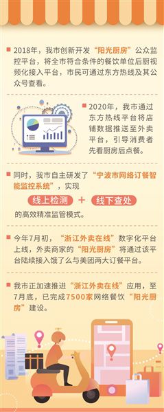 2018年,寧波市創新開發“陽光廚房”公眾監控平臺,將全市符合條件的餐飲單位后廚視頻化接入平臺,市民可通過東方熱線及其公眾號查看。