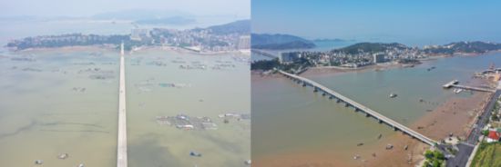 洞頭區三盤大橋海域整治前后對比