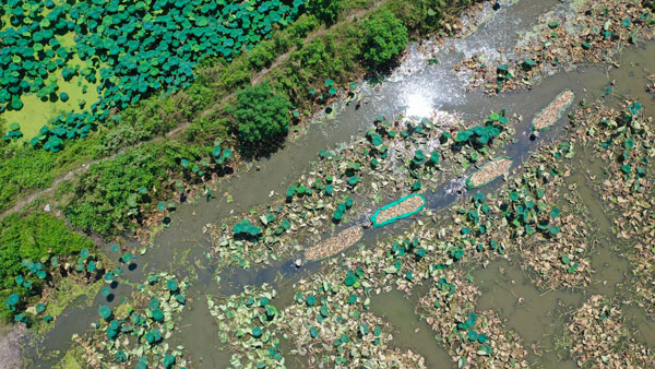 8月7日,湖州德清縣洛舍鎮張陸灣村蓮藕塘內,藕農正在采收蓮藕,一派忙碌的秋收景象。近年來,張陸灣村依托當地生態優勢,大力發展綠色蓮藕等特色種植產業,打造集生態觀光、農業體驗為一體的現代農業示范基地,實現鄉村旅游經濟與農業經濟雙豐收。