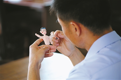 黃鐵軍正在制作奧運冠軍面塑。李潔攝