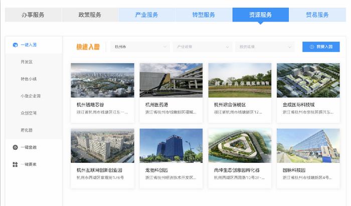 錢塘區“一鍵找園”。錢塘區經濟信息化和科學技術局供圖