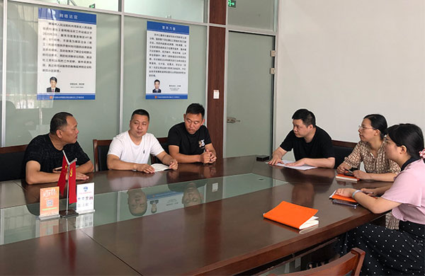 警企社工作人員與企業負責人對接主題月工作事宜。趙春陽攝