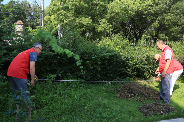 老干部實地測量健身公園建設使用面積。羅玲玲攝