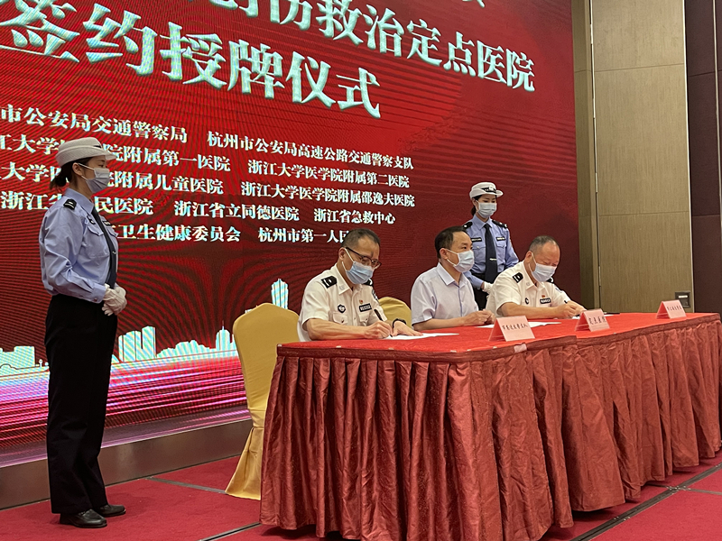 人民網杭州8月22日電 (王蕭蕭)事故面前,時間就是生命。近日,杭州交警聯合省急救中心、杭州市衛健委和七大醫院舉行交通事故創傷救治定點醫院簽約授牌儀式,確定浙江大學醫學院附屬第一醫院、浙江大學醫學院附屬第二醫院、浙江大學醫學院附屬兒童醫院等七大醫院為定點醫院。