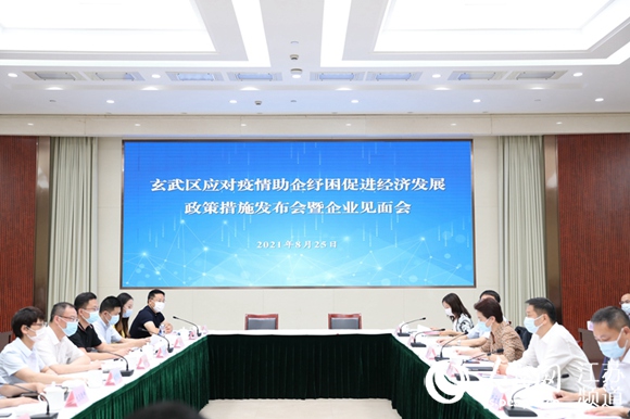 玄武區舉行應對疫情助企紓困促進經濟發展政策措施發布會暨企業見面會。玄宣攝