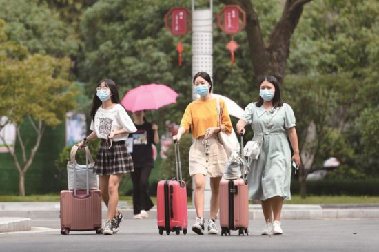 9月5日,嘉興南湖學院2018級學生、專升本2020級學生錯峰返校,學生在開學前連續14天每日監測體溫以及新冠肺炎相關癥狀,記錄健康狀況和活動軌跡,將健康碼、行程卡如實上報學校,配合學校做好開學入校健康檢查,安全有序推進秋季開學工作。(王振宇)