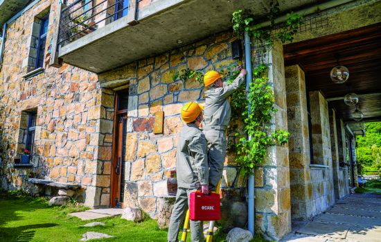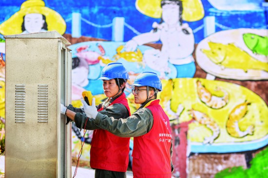 石塘供電所全方位開展民宿供電線路檢查。國網臺州供電公司供圖