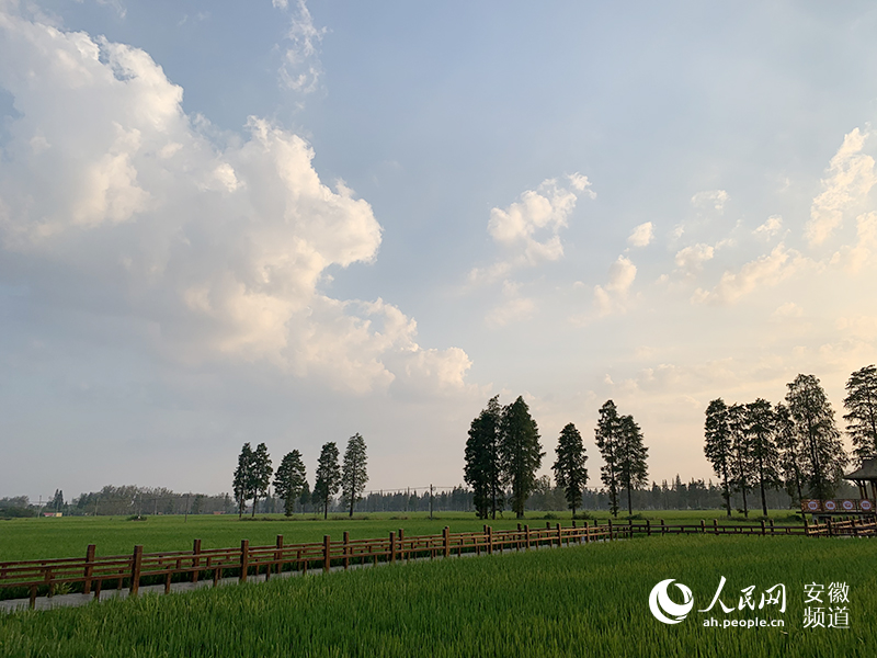 農田里的觀景臺,襯著夕陽格外顯眼。人民網 汪瑞華攝