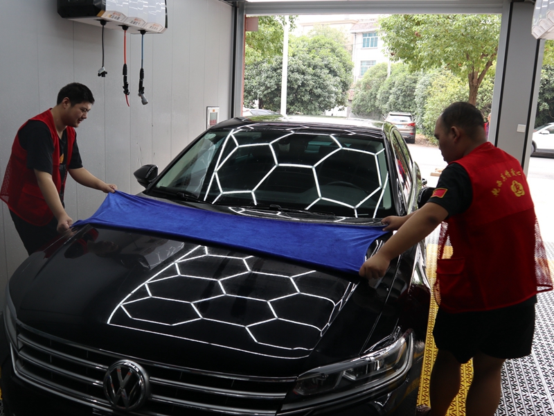 拿出車里的腳墊,清洗輪胎鋼圈,噴灑泡沫,沖洗車身……在金華市婺城區乾西鄉“真情”洗車店里,兩名員工正合作清洗著車輛。乍一看,兩個人的動作并不熟練,甚至有些笨拙,洗車的速度也不算快,但“真情”洗車店卻并不缺少顧客。有的顧客將自己的三輛車都定時在這里清洗,有的顧客更是驅車10公里趕來這里洗車。