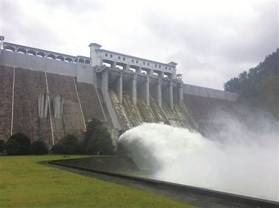 亭下水庫開閘預泄,騰出庫容。王磊攝