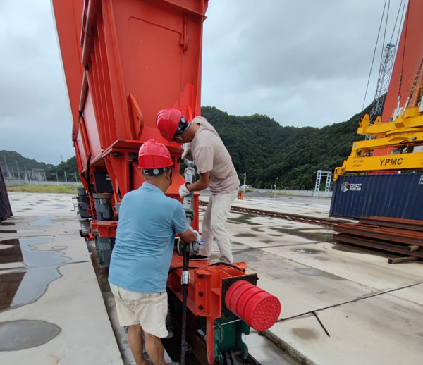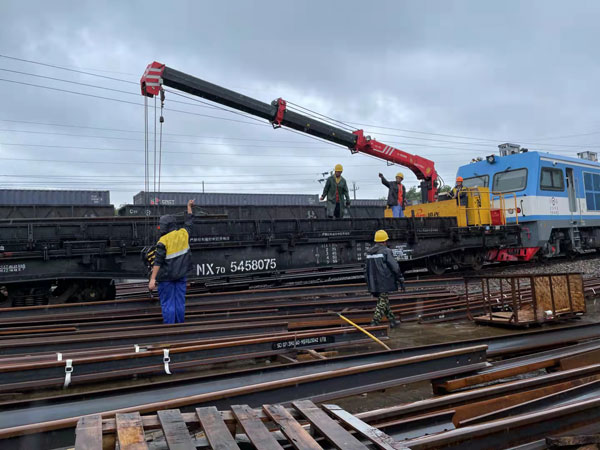 工作人員正在加固大型機械。金溫鐵道公司供圖