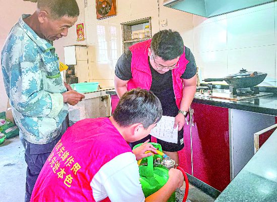9月16日,在金華婺城區蔣堂鎮直里村村民胡群英家中,蔣堂鎮黨員志愿者上門幫助檢查燃氣灶具安全,還免費更換防爆燃氣軟管,并細心提醒燃氣日常使用中的安全注意事項。近段時間,為保障農村用戶燃氣管道使用安全,蔣堂鎮、村黨員志愿者主動請纓,切實為群眾辦實事,兩名黨員組成一個服務小組,挨家挨戶到需要的村民家中幫忙更換燃氣軟管。(吳潮宏)