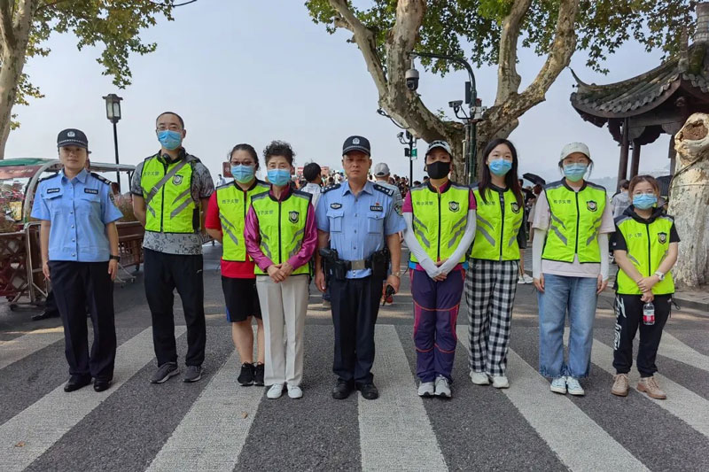 西子小義警們將做好的月餅帶到斷橋,送給執勤巡邏的警察叔叔。這是“斷橋大白”陳宗耀堅守崗位的第16個中秋了,他的臉上布滿汗珠,正在不斷回答游客咨詢,奔波于一個個物品遺失、老幼走散等景區假日常見警情!笆迨,這是我們親手做的,你一定不要忙忘了吃!”小義警們圍住陳宗耀,拉著他的手要他坐下來,滿滿咬一口月餅,再投入緊張的節日安保工作中!昂锰鸷锰,被你們甜到了!”