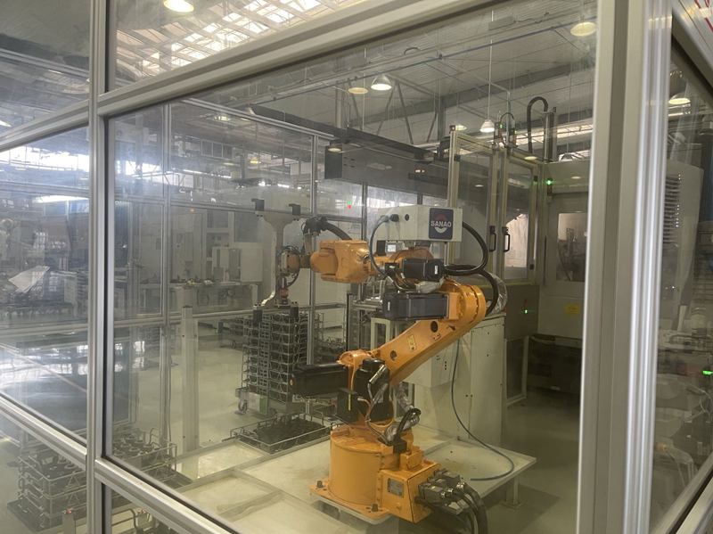 雙環傳動工廠內,機器人代替人工正在進行生產操作。人民網 王蕭蕭攝
