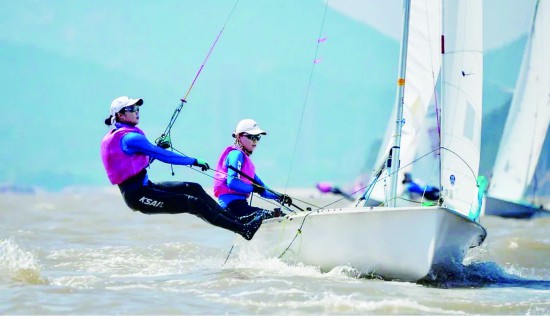 臺州椒江姑娘魏夢喜與搭檔高海燕攜手,以壓倒性優勢獲得第十四屆全運會帆船女子470級賽事冠軍,為浙江隊拿下一金。