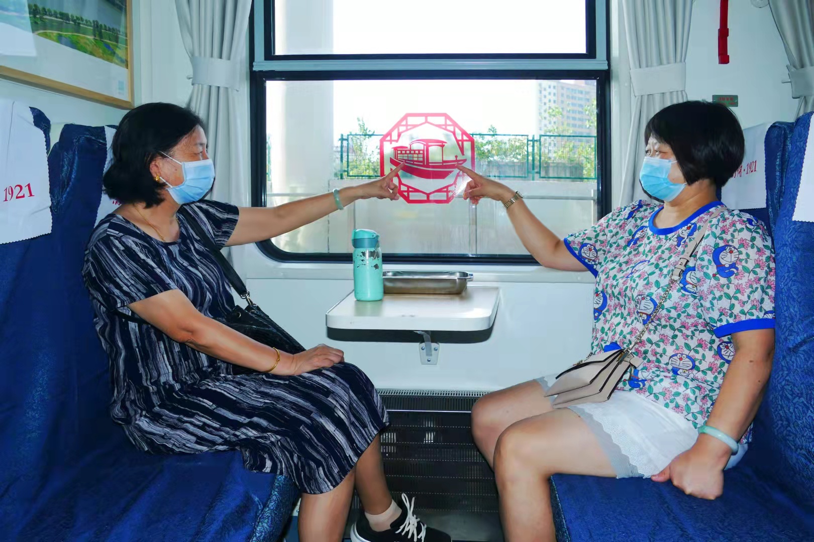 同時,為了便于團隊旅客在車上開展黨課和黨史教育,列車上所有的小桌板上都張貼有“列車微課堂”二維碼,旅客用手機就可以看到列車功能車廂的介紹視頻及短視頻課程,工作人員也將不定期更新微課內容,讓乘坐紅色旅游列車的旅客體驗一堂高質量的黨課。