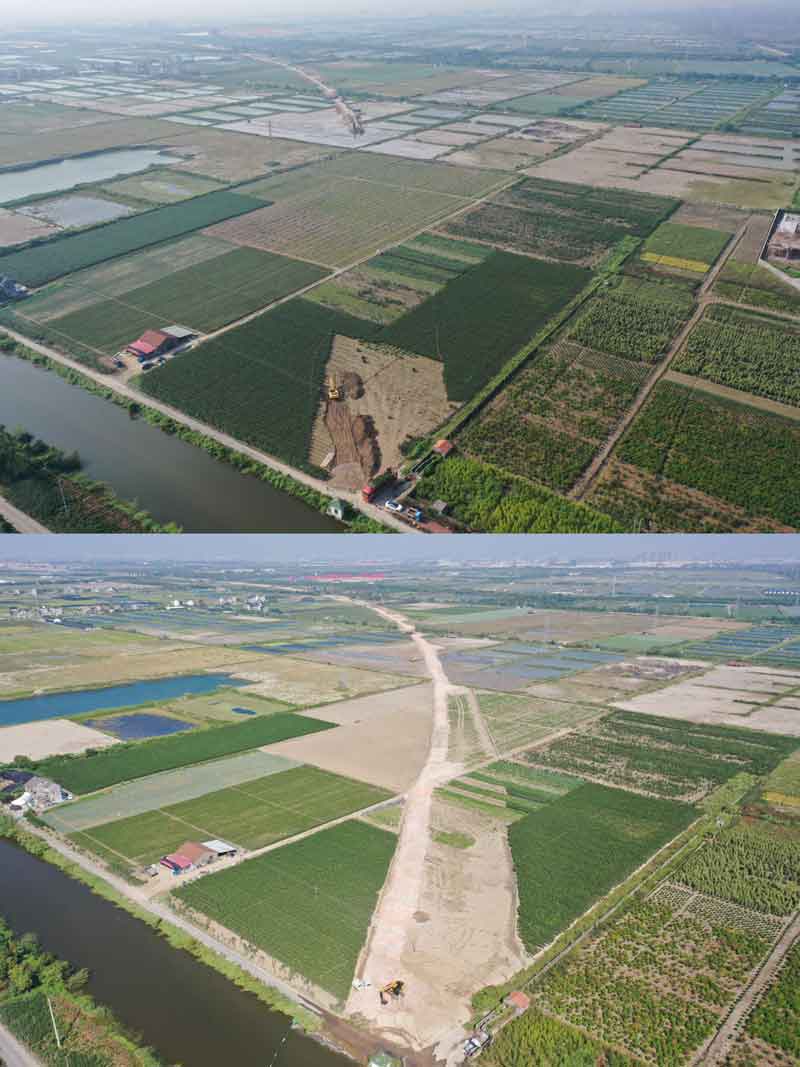 便道貫穿前后對比圖。杭紹甬高速杭紹段項目部供圖