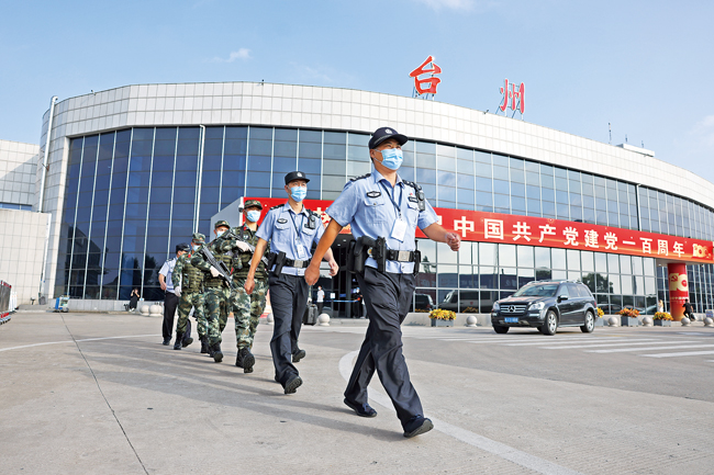 近日,為做好節日安全保衛工作,臺州機場公安分局啟動公安、武警武裝巡邏聯勤機制。安保力量荷槍實彈不間斷巡邏執勤,共同擔負起維護航站區治安秩序的重要職責,確保市民出行安全。(潘侃。