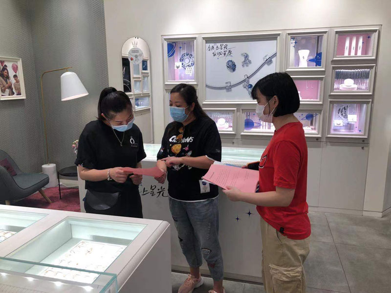 “武林店小二”在商鋪進行有序用電宣傳。武林街道供圖
