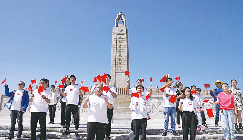 “國慶節送您一面小國旗……”10月1日上午,游客一踏上臺州下大陳碼頭,臺州椒江大陳鎮的工作人員就遞上五星紅旗。當天,大陳鎮工作人員在大陳島墾荒紀念碑組織了一場《歌唱祖國》的快閃,吸引了眾多游客積極參與。(王奔)