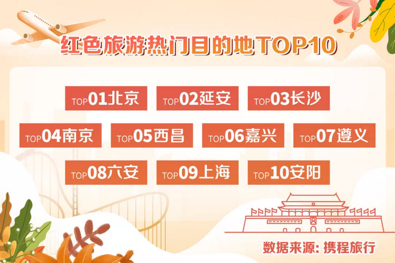 此外,據相關旅游軟件平臺數據顯示,今年國慶假期,“00后”紅色旅游訂單量同比漲超80%。根據攜程旅行數據統計,北京、延安、長沙、南京、西昌、嘉興、遵義、六安、上海、安陽等成為紅色旅游熱門目的地TOP10!爸皫е⒆右黄鹂赐炅恕队X醒年代》,今年國慶假期再帶著他踏上紅色文化之旅!10月1日,上海市民吳先生帶著兒子搭乘南湖1921號紅色旅游列車,奔馳于滬嘉兩地,重走一大路,感悟“紅船精神”。